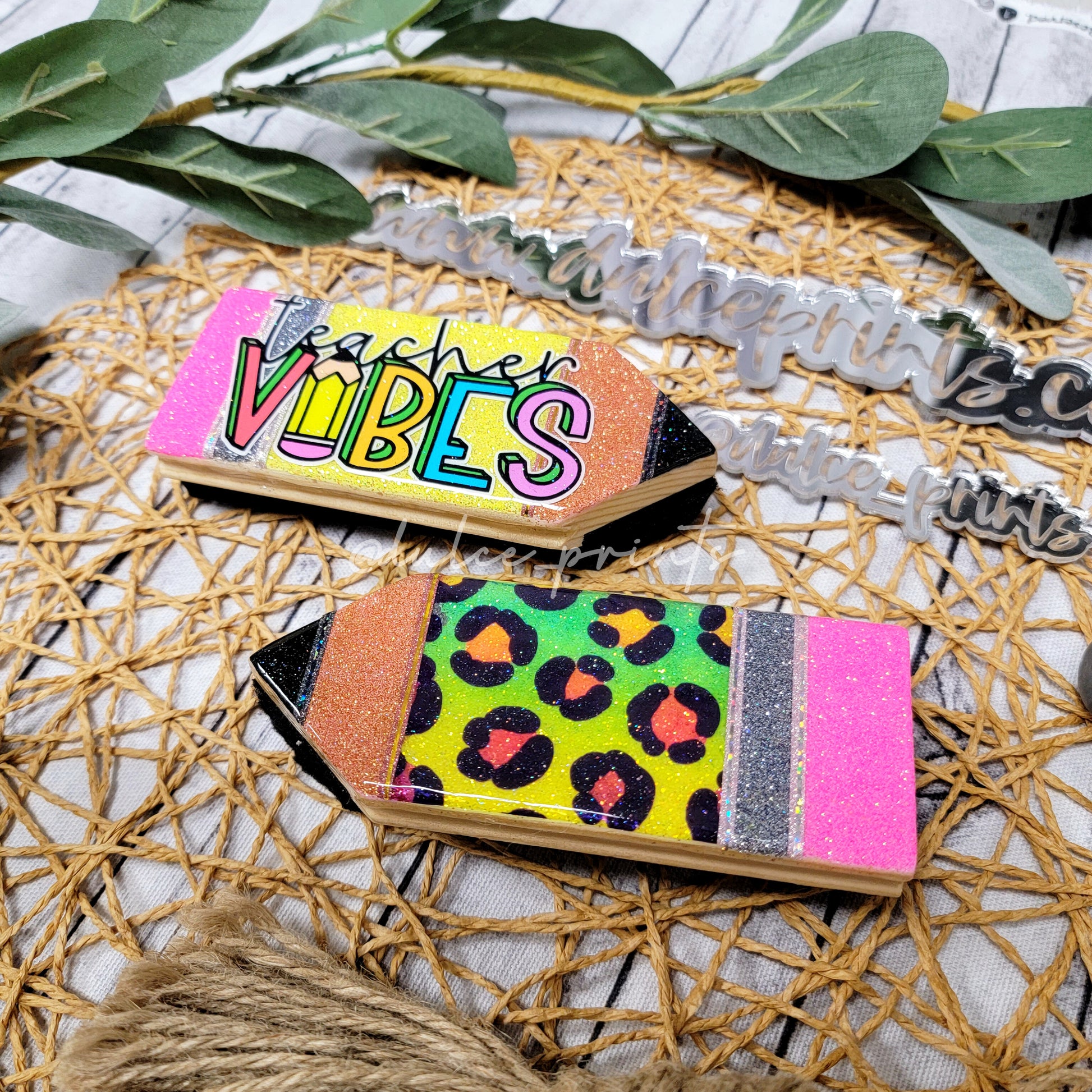 Dry erase board eraser. (Glitter and decals are sealed)