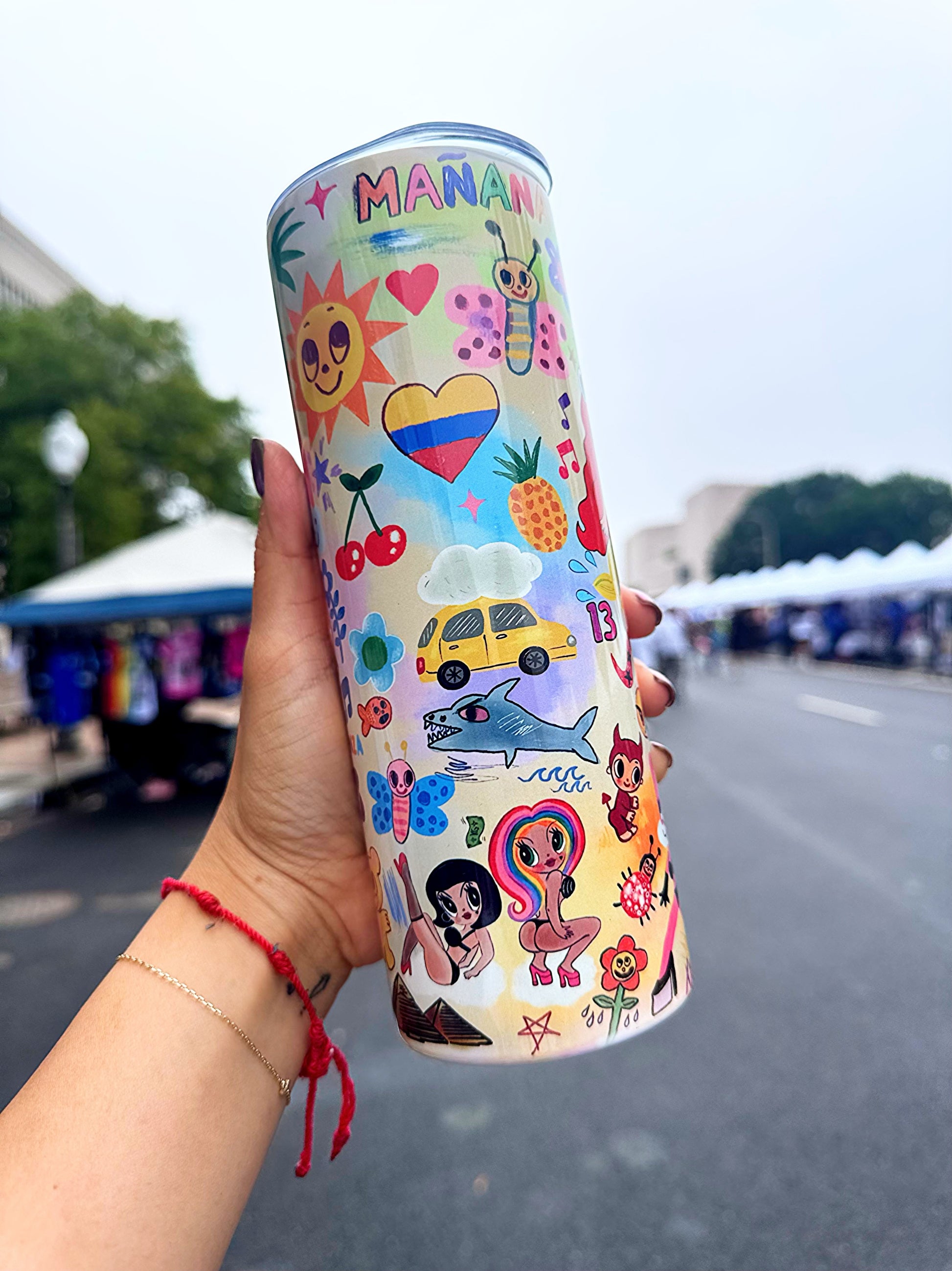 All tumblers come with push down lid and plastic straw.
