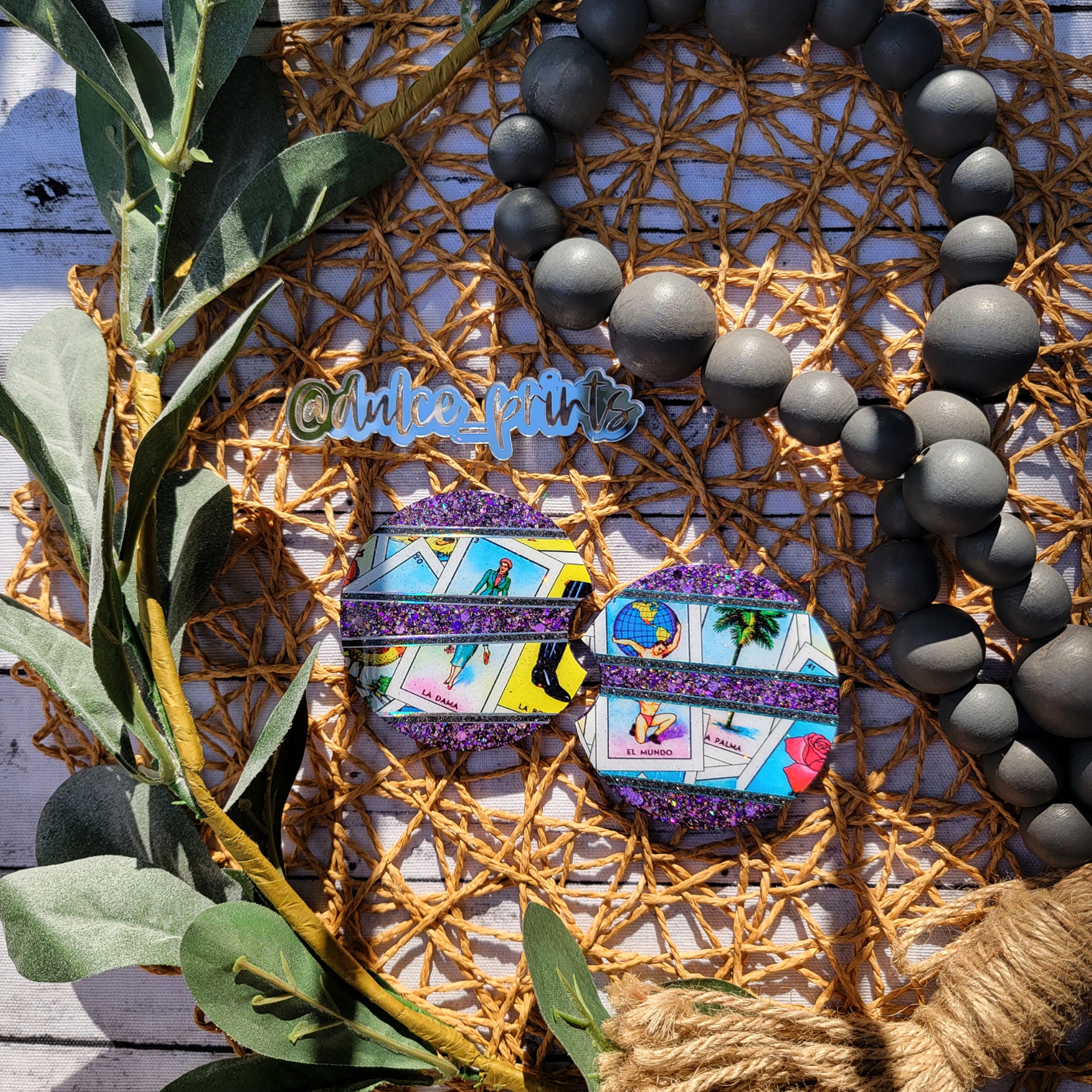 I seal my coasters with an epoxy resin that is FDA compliant food grade. Although these are pretty crack resistant, they are not UNBREAKABLE therefore, do not drop your car coaster. Hand wash only and do not soak. Not microwave or dishwasher safe. Do not leave in extreme heat or direct sunlight.