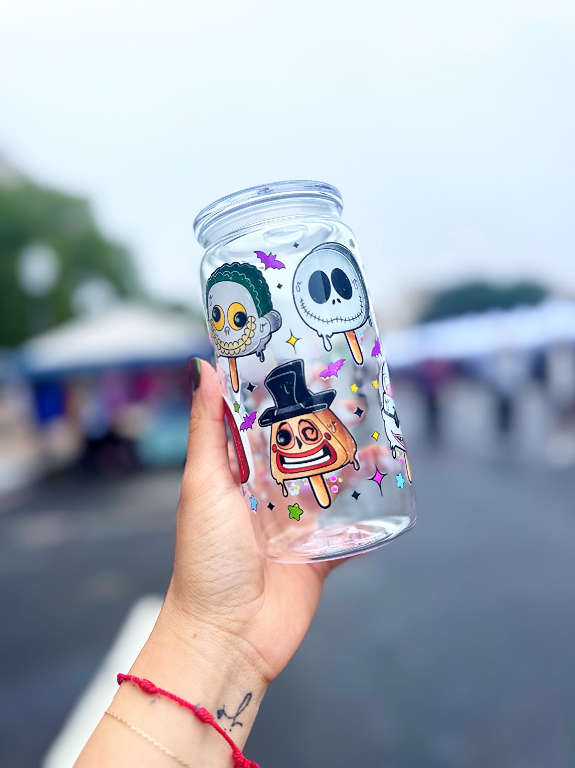 All tumblers come with push down clear acrylic lid and plastic straw.